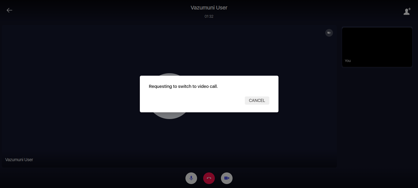 Step 1 : When you click on video icon while you connected with audio call, the pop-up will show with Switch option.